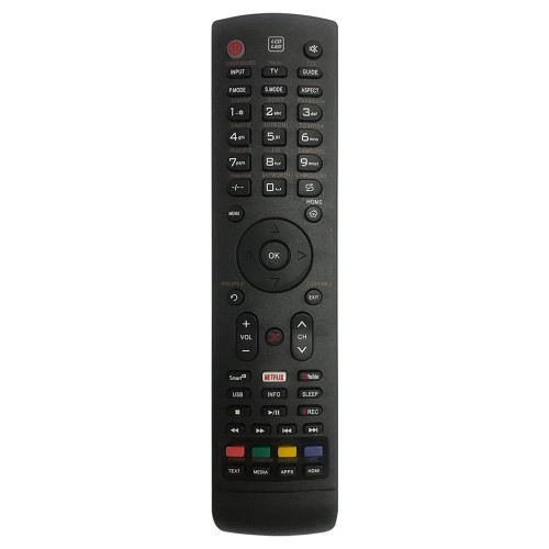 Includes essential TV operation keys such as Power, Volume, Channel, Mute, Menu and Number keys.